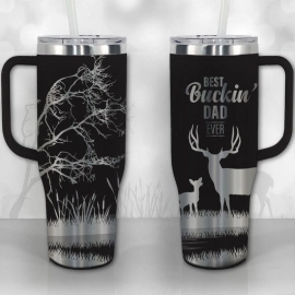Deer Hunter Dad Papa Personalized 30oz or 40oz Tumbler with Handle, Best Gifts NVA
