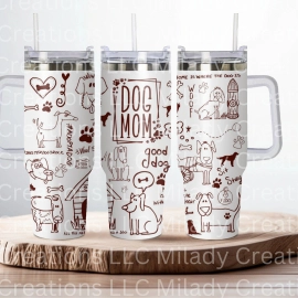 Dog Mom Engraved Tumbler, 30oz or 40oz Tumbler with Handle, Birthday Anniversary Tumbler Gift HFN