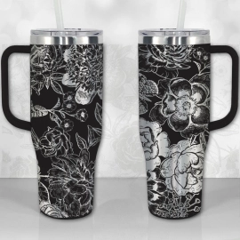 Peonies and Roses Floral Pattern 30oz or 40oz Tumbler with Handle, Best Gifts NVA