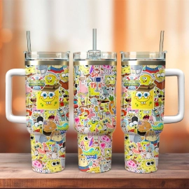 The SpongeBob SquarePants Cartoon Custom Quencher 30oz or 40oz Stainless Steel Tumbler With Handle, Best gifts for Friend Family NVA