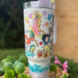 Disney Princesses 30oz or 40oz Tumbler Snow White, Cinderella, Aurora, Ariel, Belle, Jasmine, Mulan, Tiana and Pocahontas fan gift tumbler Gift girly Princess Birthday Anniversary Gift HFN