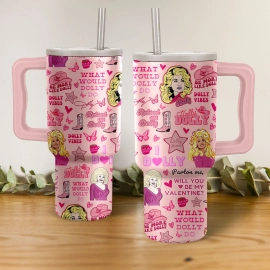 Dolly Parton Music Custom Stanley Quencher 40oz Stainless Steel Tumbler HG With Handle