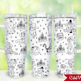 Disney Winnie The Pooh The Many Adventures Movies Characters Pooh and Friends 30oz or 40oz Tumbler with Handle, Birthday Anniversary Tumbler Gift HFN