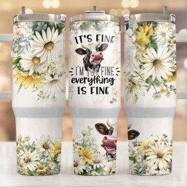 It’s fine I’m fine everything is fine 30oz or 40oz Quencher Tumbler Gift For Her Him Birthday Gift LN Cow Sarcastic quote Waterslide