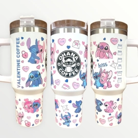 Stitch and Angel Valentine 30oz or 40oz Quencher Tumbler Gift For Her Him Birthday Gift LN with Optional Personalisation