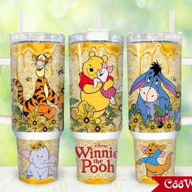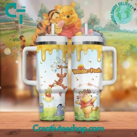 Winnie The Pooh Disney Cartoon 30oz or 40oz Quencher Stainless Steel Tumbler With Handle, Best Gift Idea NVA
