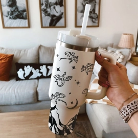 Bird Racoon Tumbler 30oz or 40oz With Handle, Forest Pattern 30oz or 40oz Tumbler, Woodland Animal Tumbler 30oz or 40oz, Stainless Steel Tumbler, Insulated Tumbler HFN