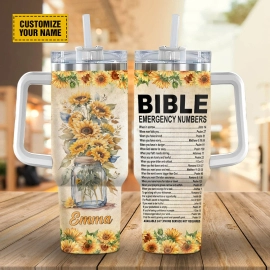 Bible Emergency Numbers Customized Tumbler, 30oz or 40oz Tumbler With Handle, Christian Gift, Baptism Gift, Personalized HG