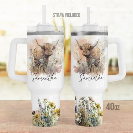 Personalized Western Highland Cow 30oz or 40oz Tumbler with Handle, Gift for Her HG