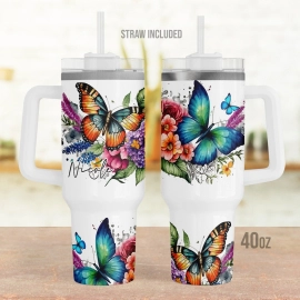Butterfly Lovers Personalized, Custom Floral Blue Butterfly 30oz or 40oz Tumbler with Handle, Gift for Her HG