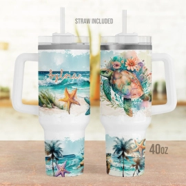 Gift for turtle lover Beach Starfish Summer custom 30oz or 40oz Tumbler Personalized, Personalized Turtle Tumbler with Handle, Gift for Her HG