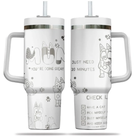 Bluey Heeler Dog 40oz Engraved Tumbler, Blue Dog Mum 40oz Tumbler HG