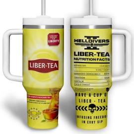 Helldivers II Liber-Tea Nutrition Facts Games Custom Quencher 30oz or 40oz Stainless Steel Tumbler With Handle HG