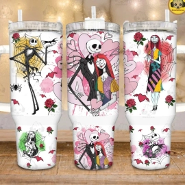 Jack and Sally Nightmare Before Christmas Valentine Gift for Her, Him on Birthday Xmas 30oz or 40oz Tumbler