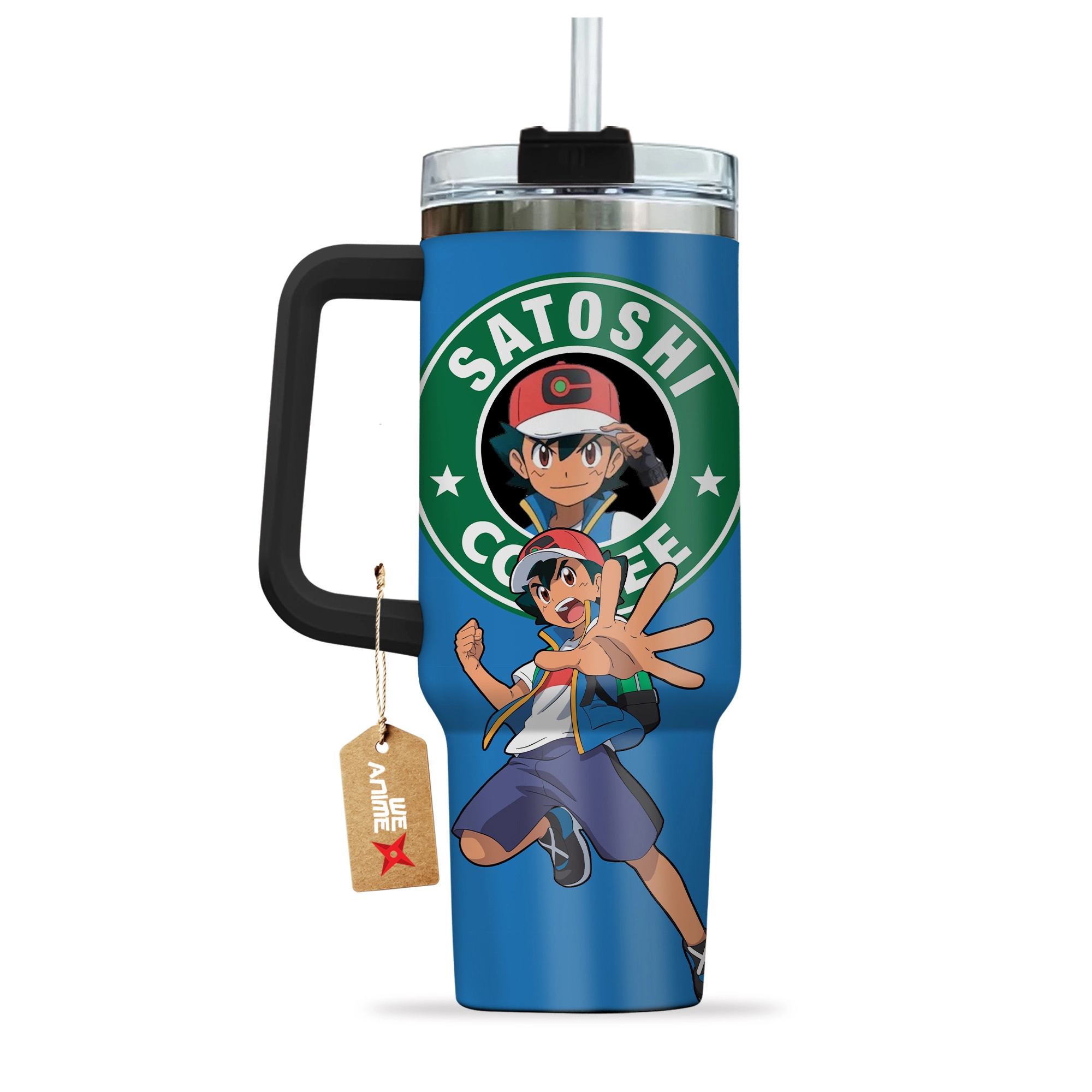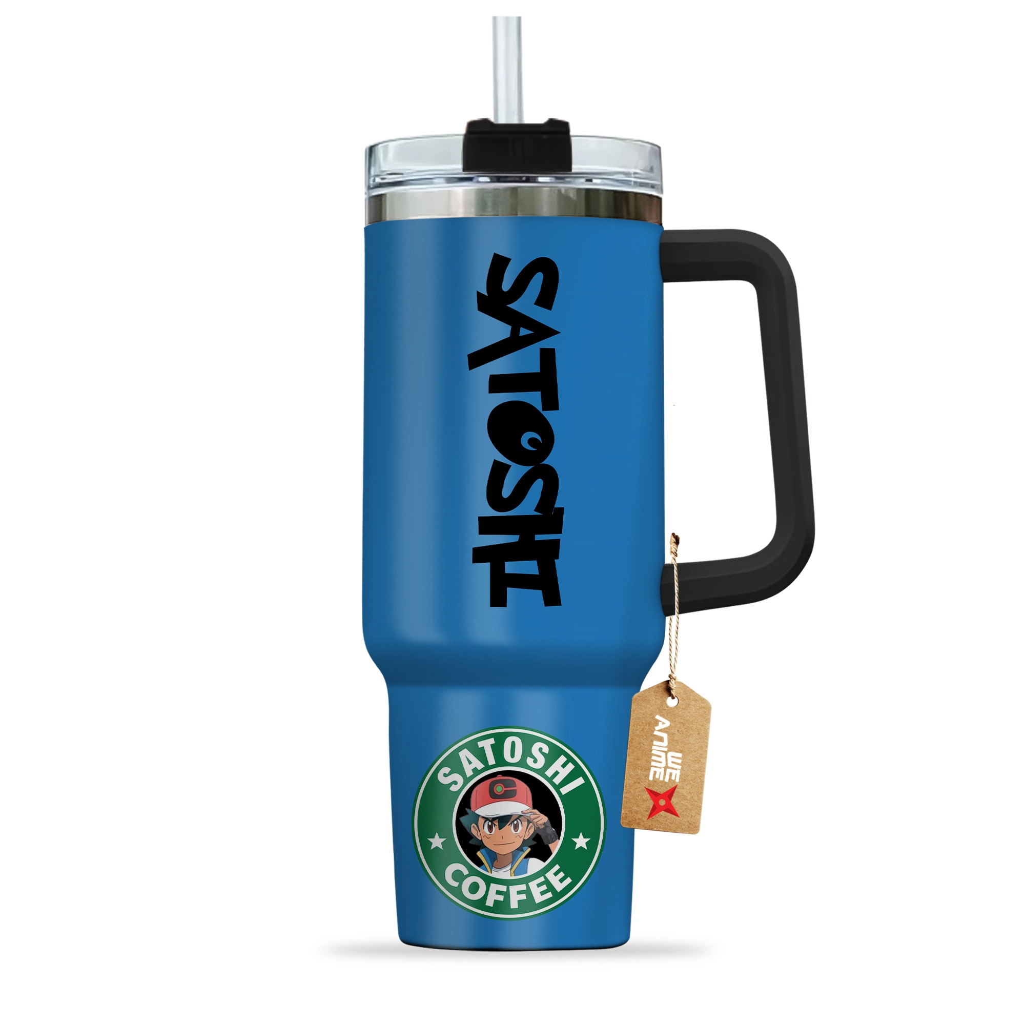 Ash Ketchum Satoshi Coffee Pokemon Anime Custom 30oz or 40oz Quencher Stainless Steel Tumbler With Handle, Best Gift Idea NVA