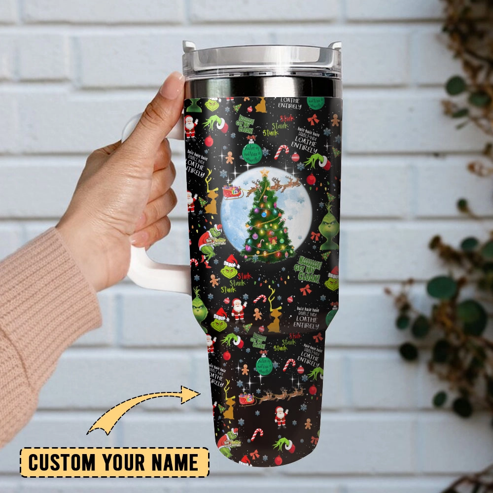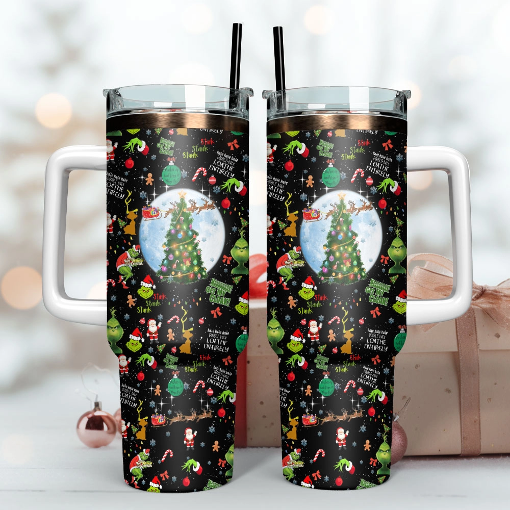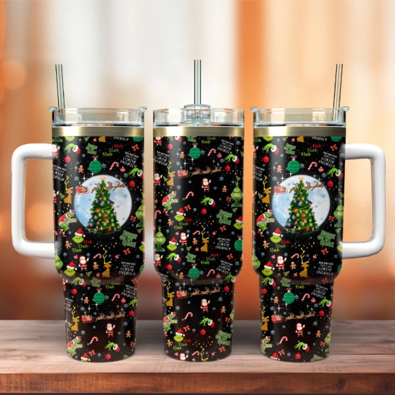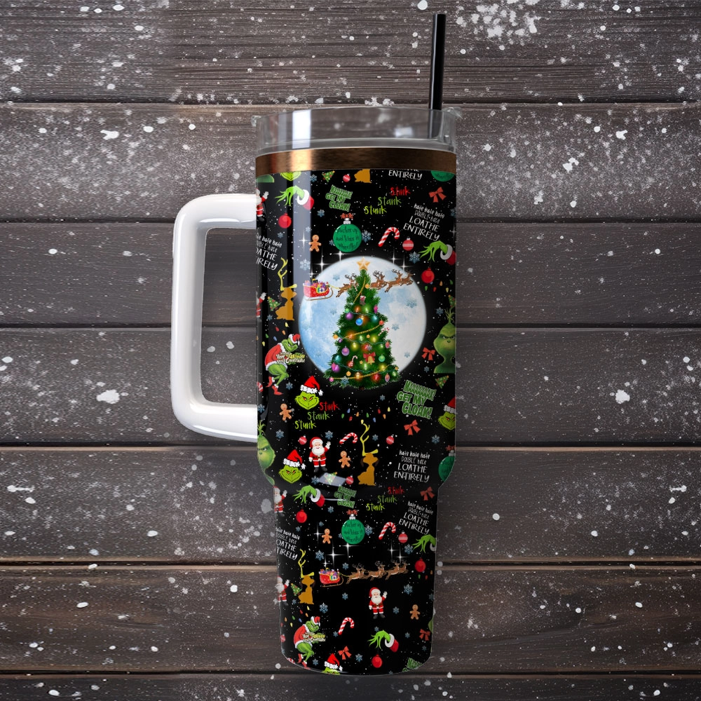 Grinch Illumination Cartoon Custom Quencher 30oz or 40oz Stainless Steel Tumbler With Handle, Best gifts for Friend Family NVA