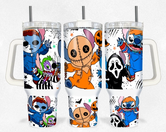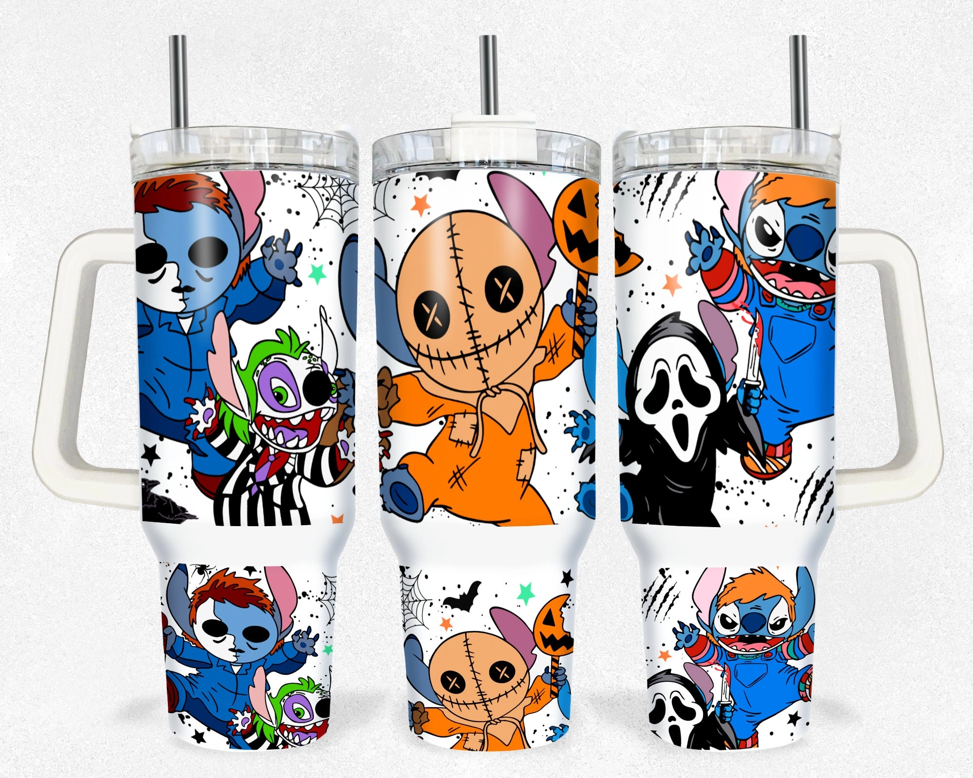 Halloween Stitch Disney Cartoon Custom Stanley Quencher 30oz or 40oz Stainless Steel Tumbler With Handle HG