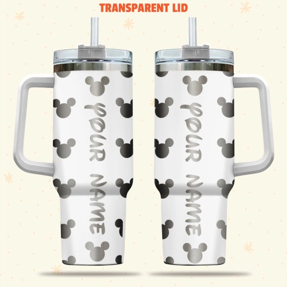 Mickey Mouse Disney Cartoon 30oz or 40oz Quencher Stainless Steel Tumbler With Handle, Best Gift Idea NVA