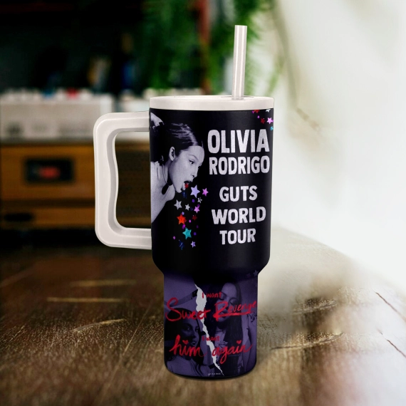 Oliviaa RodriG0 Guts World Tour Music Custom Stanley Quencher 40oz Stainless Steel Tumbler HG With Handle