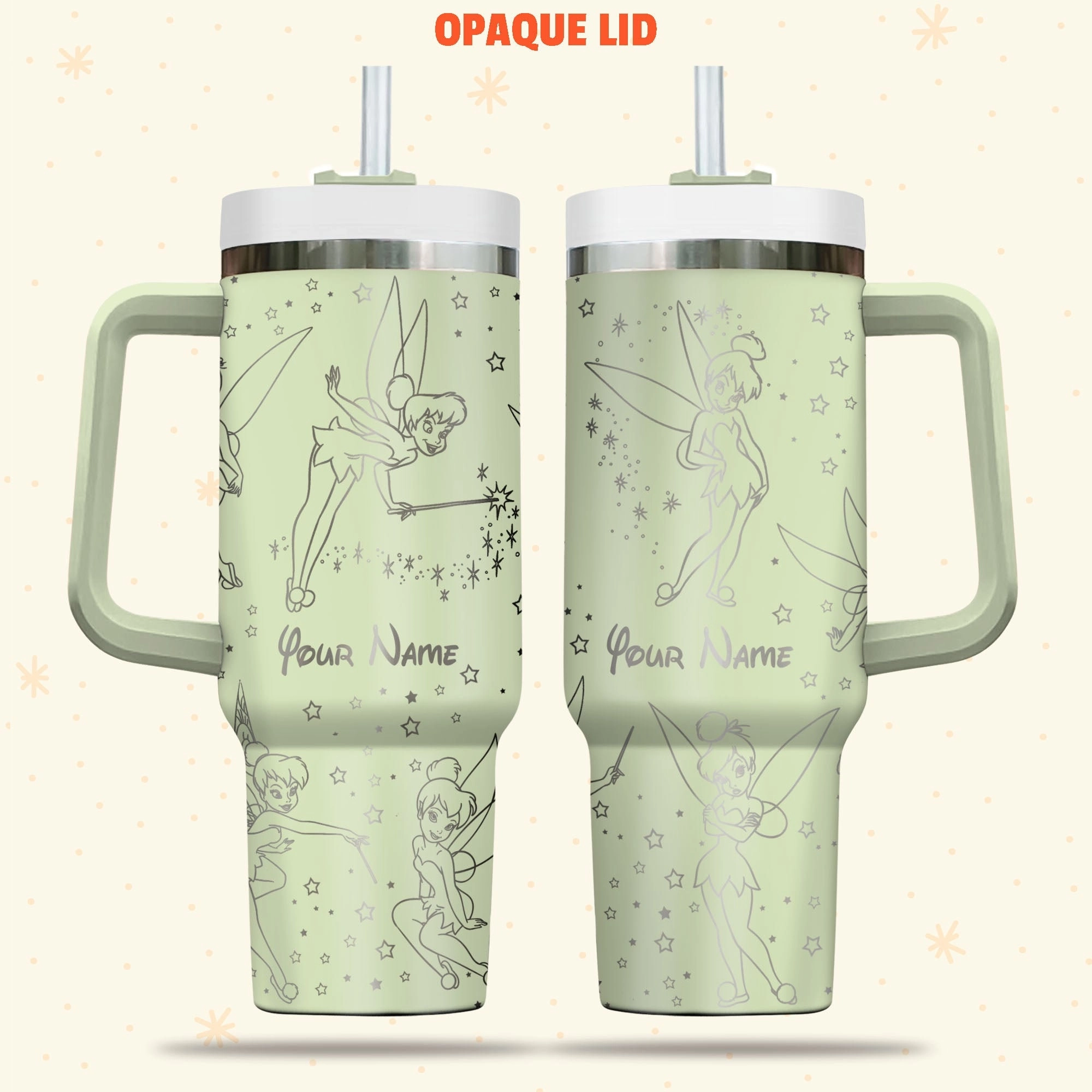 Tinkerbell Disney Cartoon 30oz or 40oz Quencher Stainless Steel Tumbler With Handle, Best Gift Idea NVA