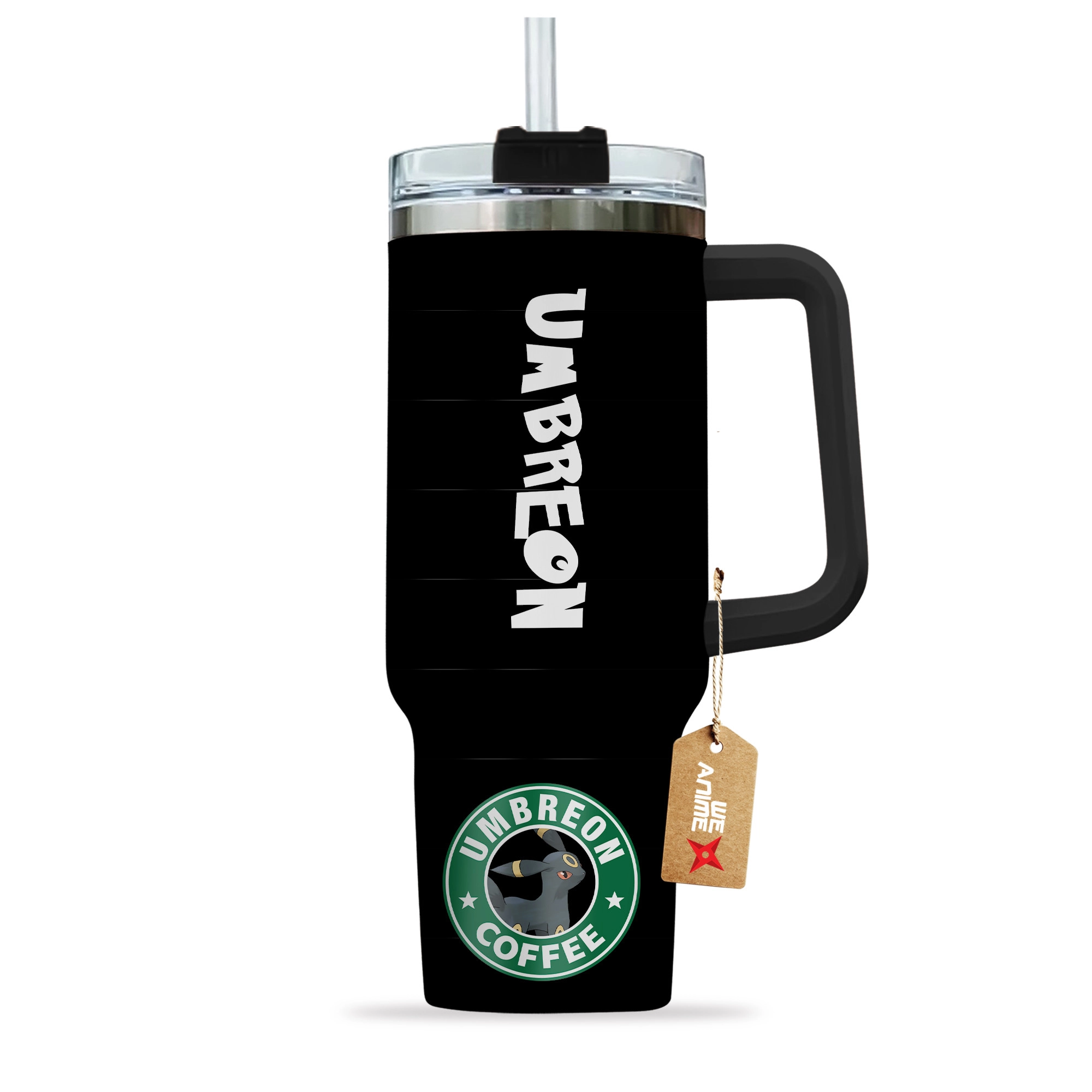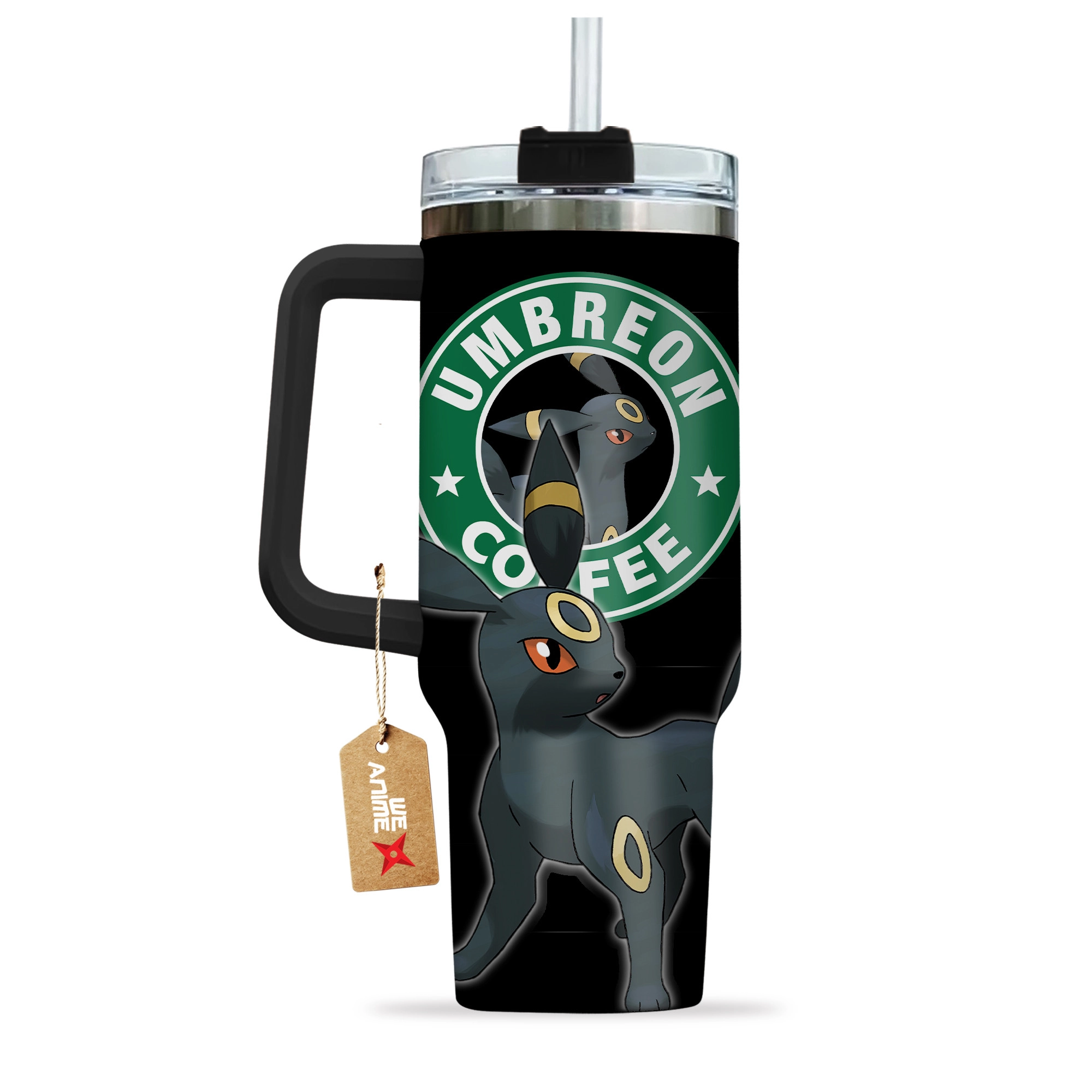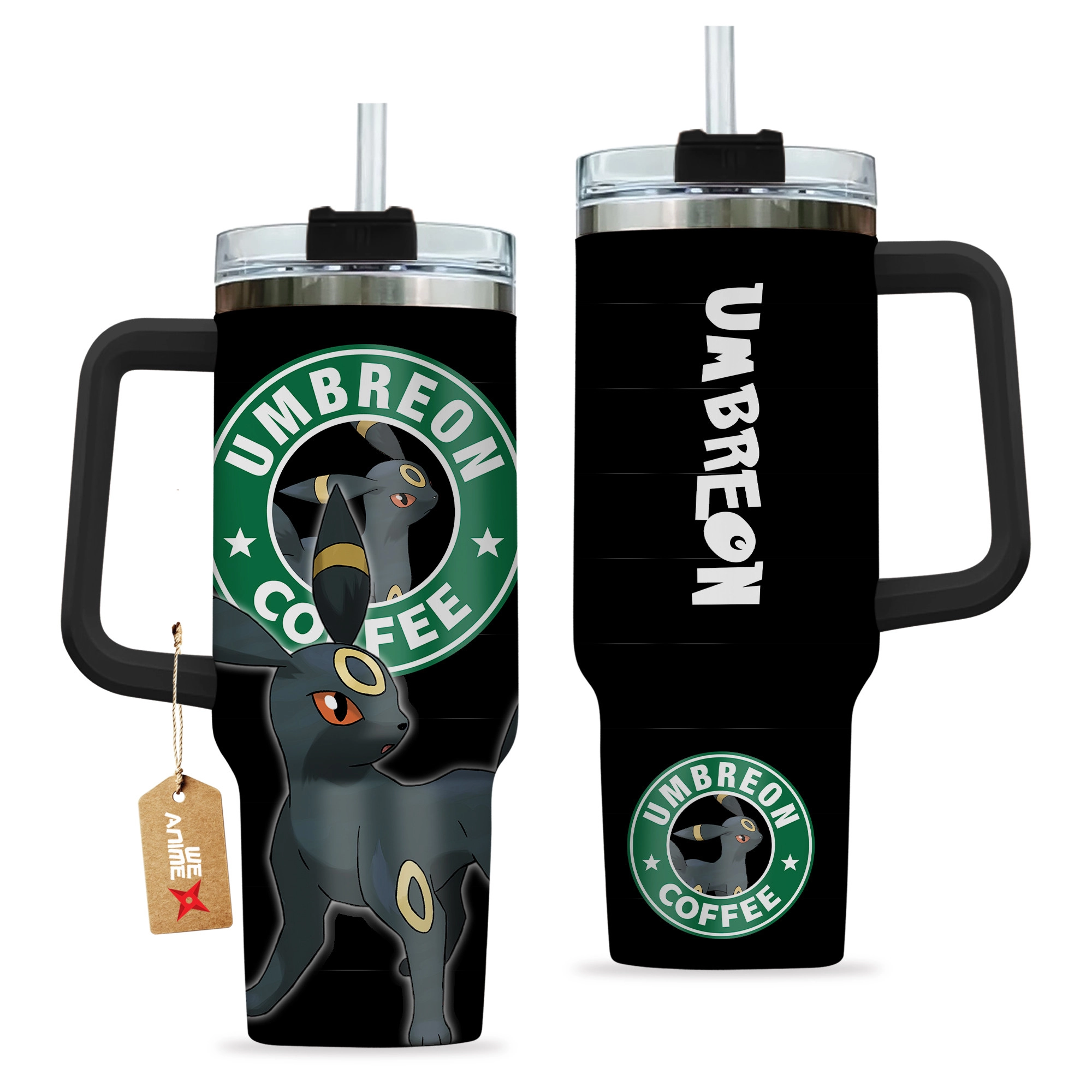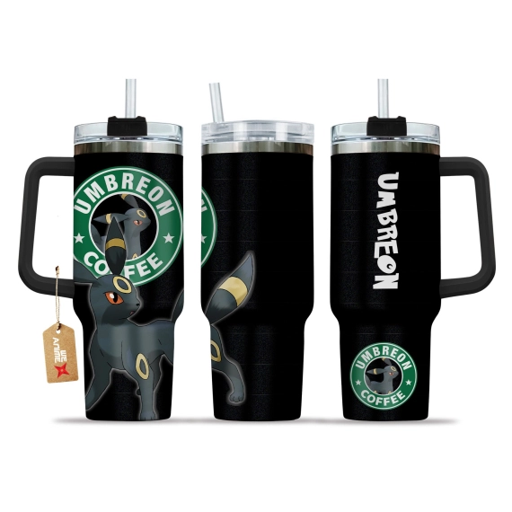 Umbreon Coffee Pokemon Anime Custom 30oz or 40oz Quencher Stainless Steel Tumbler With Handle, Best Gift Idea NVA