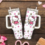 Valentine Cartoon Hello Kitty Teddy 30oz or 40oz Tumbler, Gift Valentine Tumbler, Valentine Movie 40oz Quencher Tumbler Fan Gift HFN