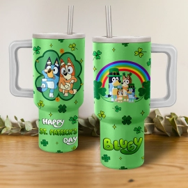 Bluey St. Patricks Day Cartoon Custom Quencher 30oz or 40oz Stainless Steel Tumbler With Handle HG
