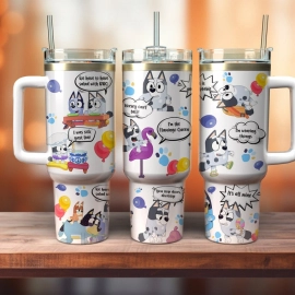 Bluey Heeler Family Cartoon Custom Quencher 30oz or 40oz Stainless Steel Tumbler With Handle HG