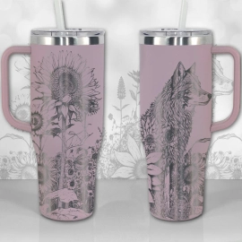 Wolf and Sunflowers 30oz or 40oz Tumbler with Handle, Best Gifts NVA