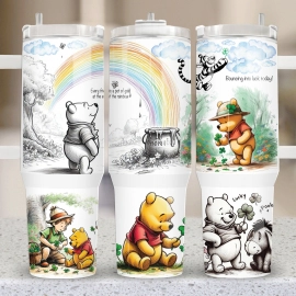 Winnie-the-Pooh St Patricks Day Tumbler Gift| 30oz or 40oz Tumbler with handle, Birthday Anniversary Gift for Disney fan HFN